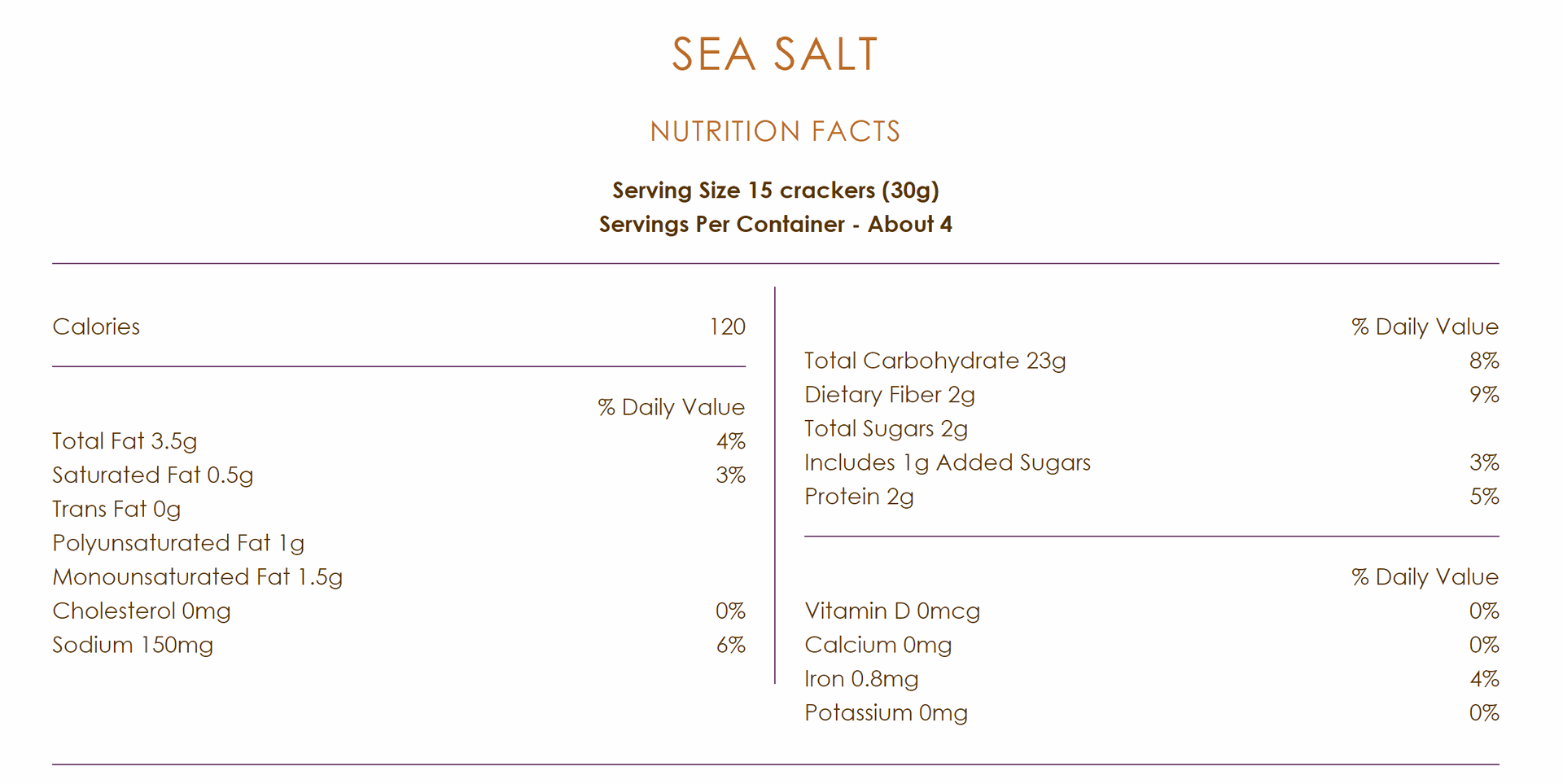 Las crujientes Multi Grain Sea Salt Crackers de Crunchmaster son unas galletas horneadas con granos enteros, semillas con un rico y sabroso sabor a sal marina.